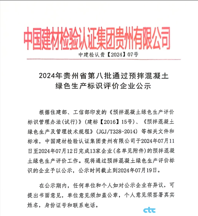 2024年貴州省第八批通過預(yù)拌混凝土綠色生產(chǎn)標(biāo)識(shí)評(píng)價(jià)企業(yè)公示