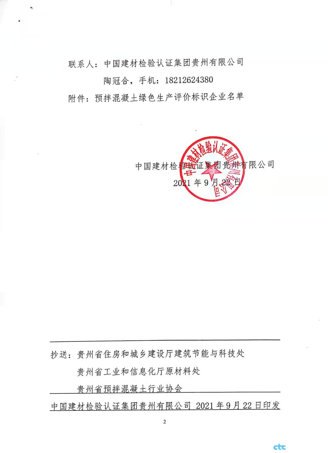 2021年貴州省第五批通過預(yù)拌混凝土綠色生產(chǎn)標識評價企業(yè)公示