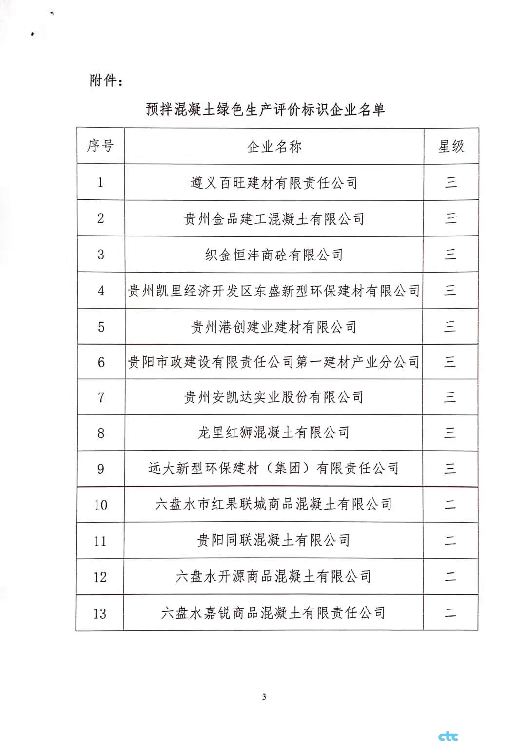 2022年貴州省第六批通過預(yù)拌混凝土綠色生產(chǎn)標識評價企業(yè)公示
