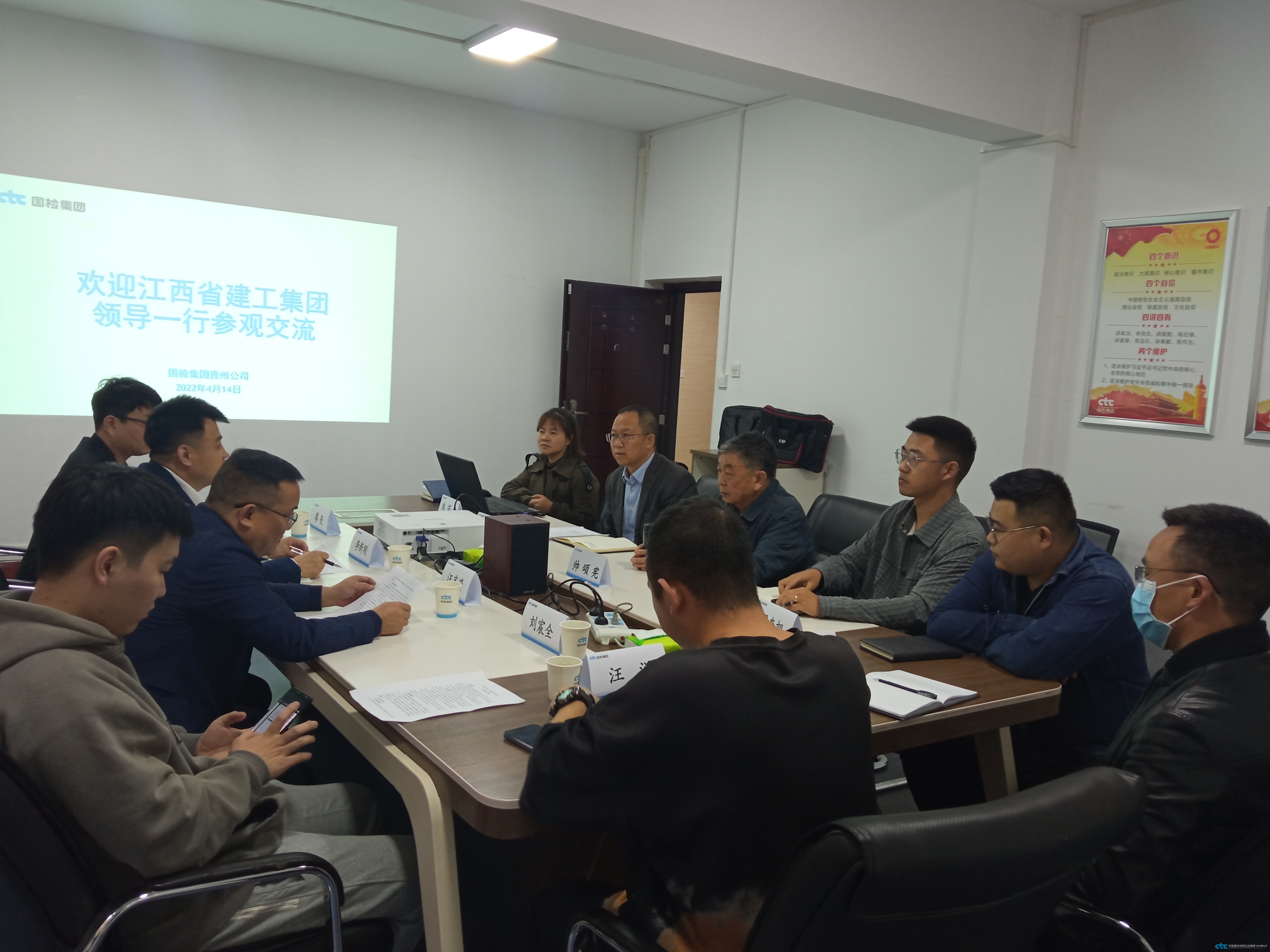 2022年4月14日,江西省建工集團(tuán)總工程師李新剛帶隊(duì)來我司考察交流,貴州公司副總經(jīng)理李繼超代表公司對(duì)李新剛總工程師一行的到訪表示熱烈歡迎,雙方就高性能混凝土技術(shù)和信息化建設(shè)、數(shù)字化建設(shè)進(jìn)行了深入交流與探討。貴州公司副總經(jīng)理李繼超、技術(shù)總顧問帥頌憲、總經(jīng)理助理朱若君等參加交流活動(dòng)。