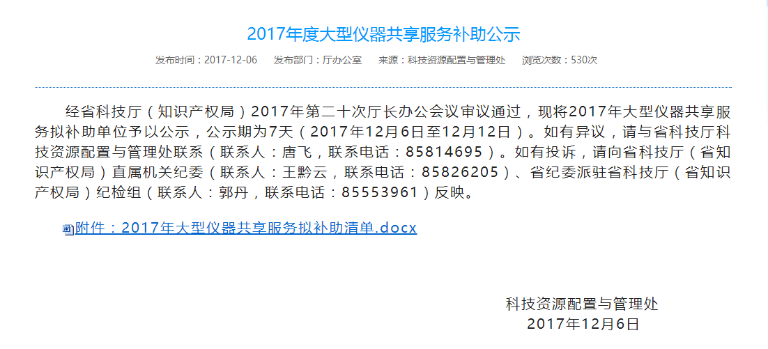貴州公司獲省科技廳2017年大型儀器共享服務(wù)10萬元補(bǔ)助