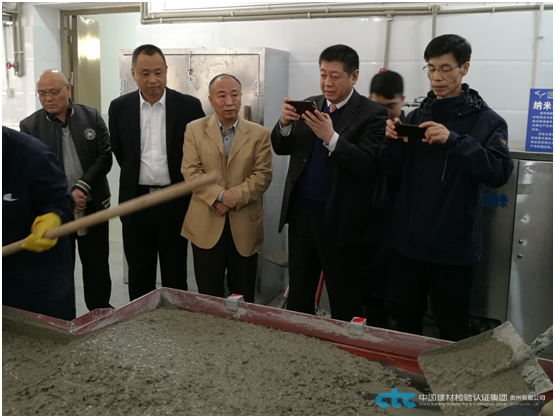 專家組觀看混凝土試配實(shí)驗(yàn)