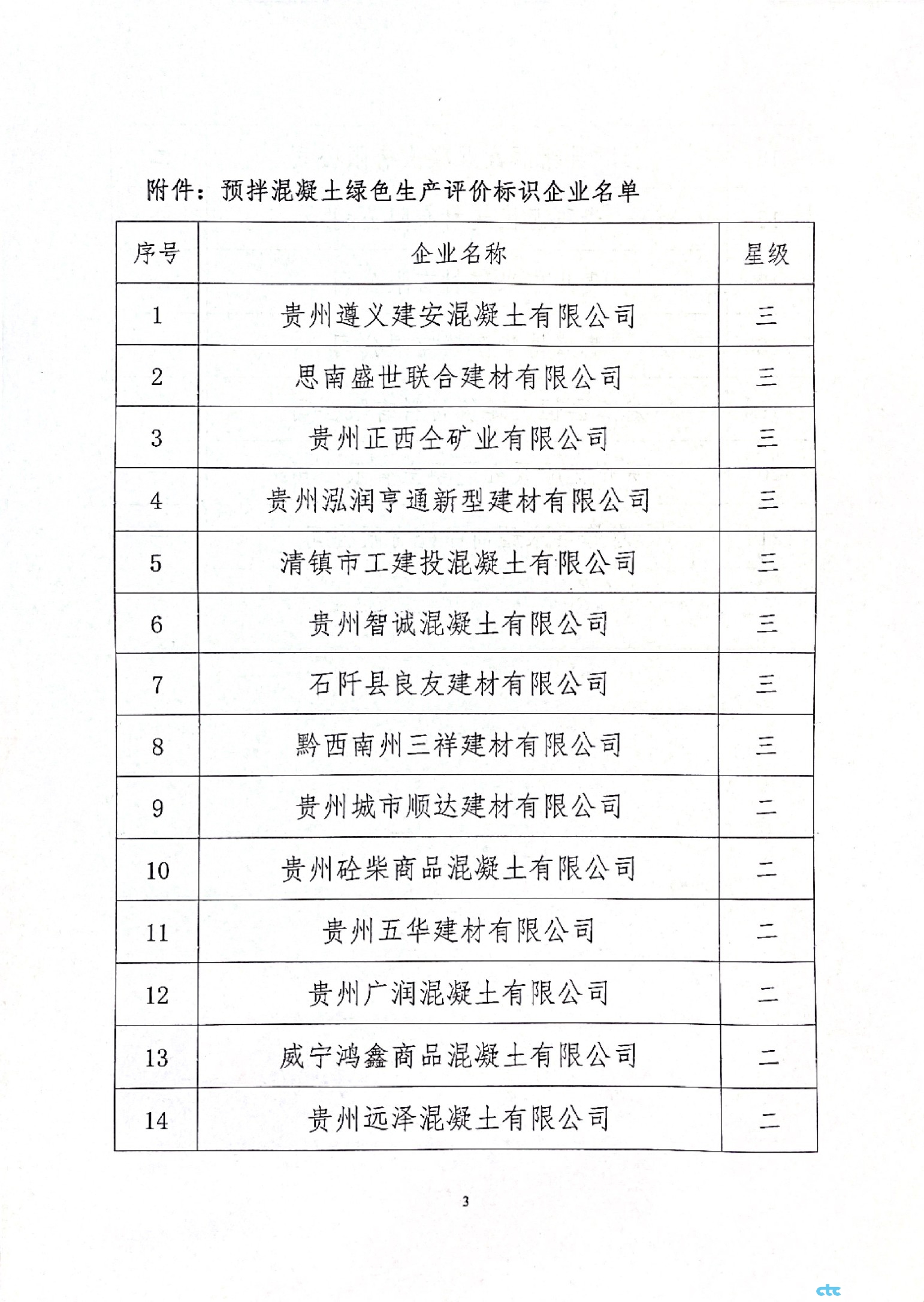2022年貴州省第六批通過預(yù)拌混凝土綠色生產(chǎn)標(biāo)識評價企業(yè)公示