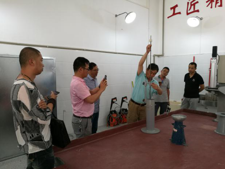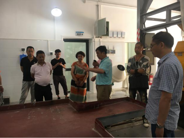 2017年8月8日,六盤水市混凝土協(xié)會秘書長林勇與會員企業(yè)負(fù)責(zé)人、貴陽市預(yù)拌混凝土協(xié)會秘書長劉光先一同到貴州公司參觀交流。貴州公司技術(shù)總顧問帥頌憲帶領(lǐng)大家參觀了高性能混凝土實驗室以及配套設(shè)施,并做現(xiàn)場講解。